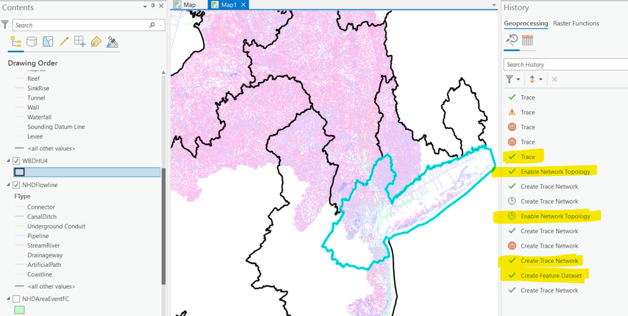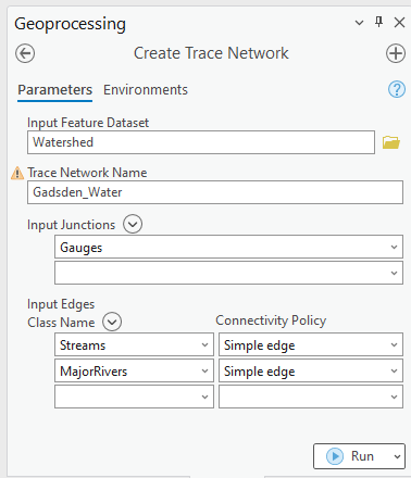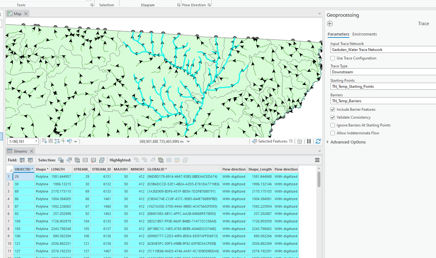 - Create a trace network (Geoprocessing tool) from the Streams.