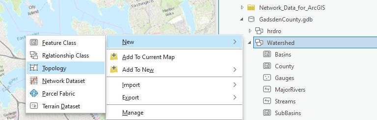 Create a feature dataset for all feature classes (the FGDB has already had a feature dataset named Watershed, but you can try to create a new one for your exercise).