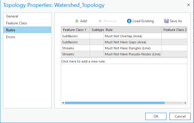 - Add the following rules on sub-basins and streams feature classes.