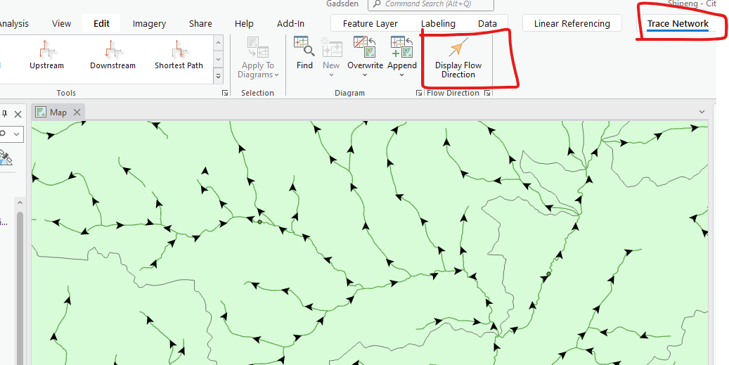 Show flow direction (possible issue with ArcGIS Pro. Try to restart it if the directions do not show up on the map)